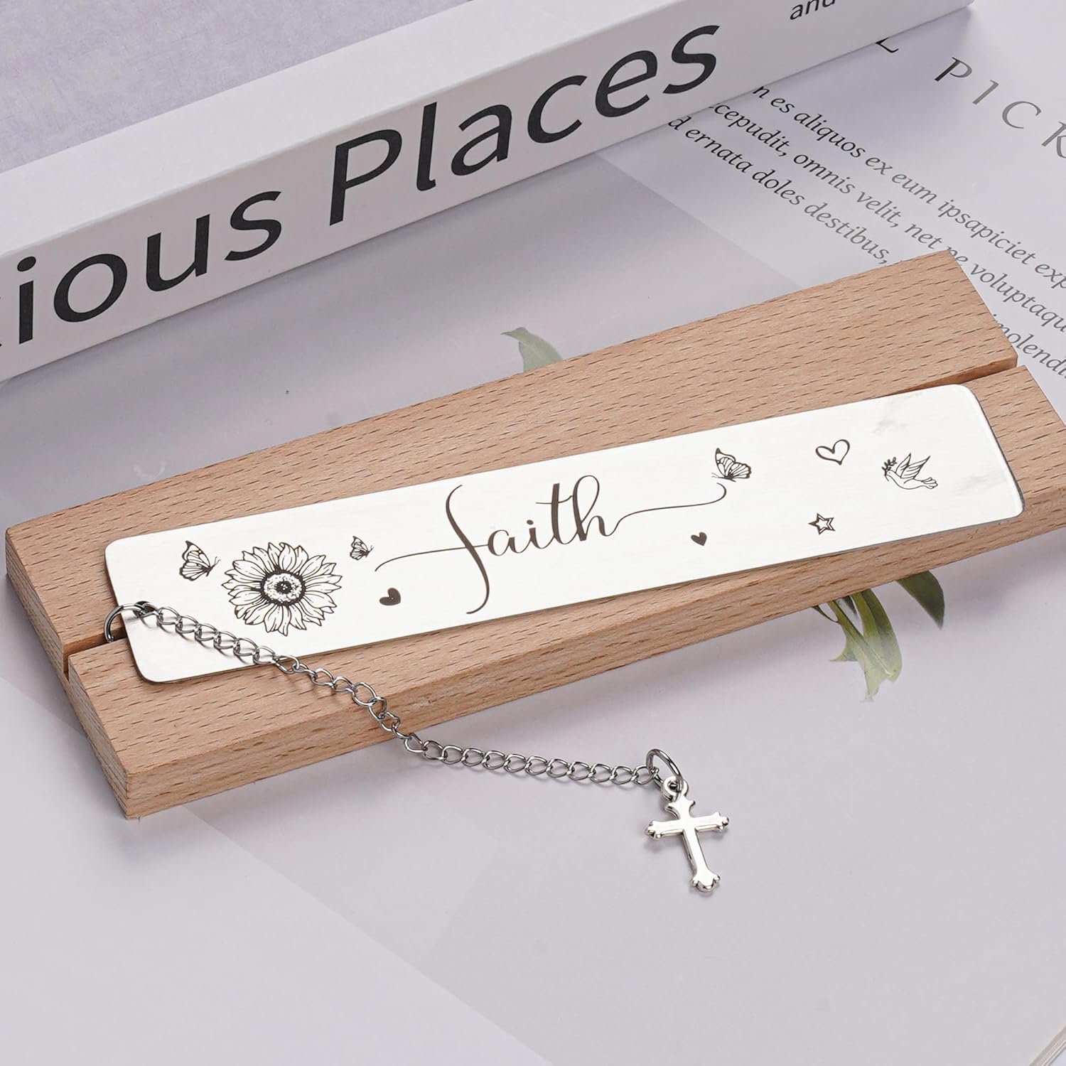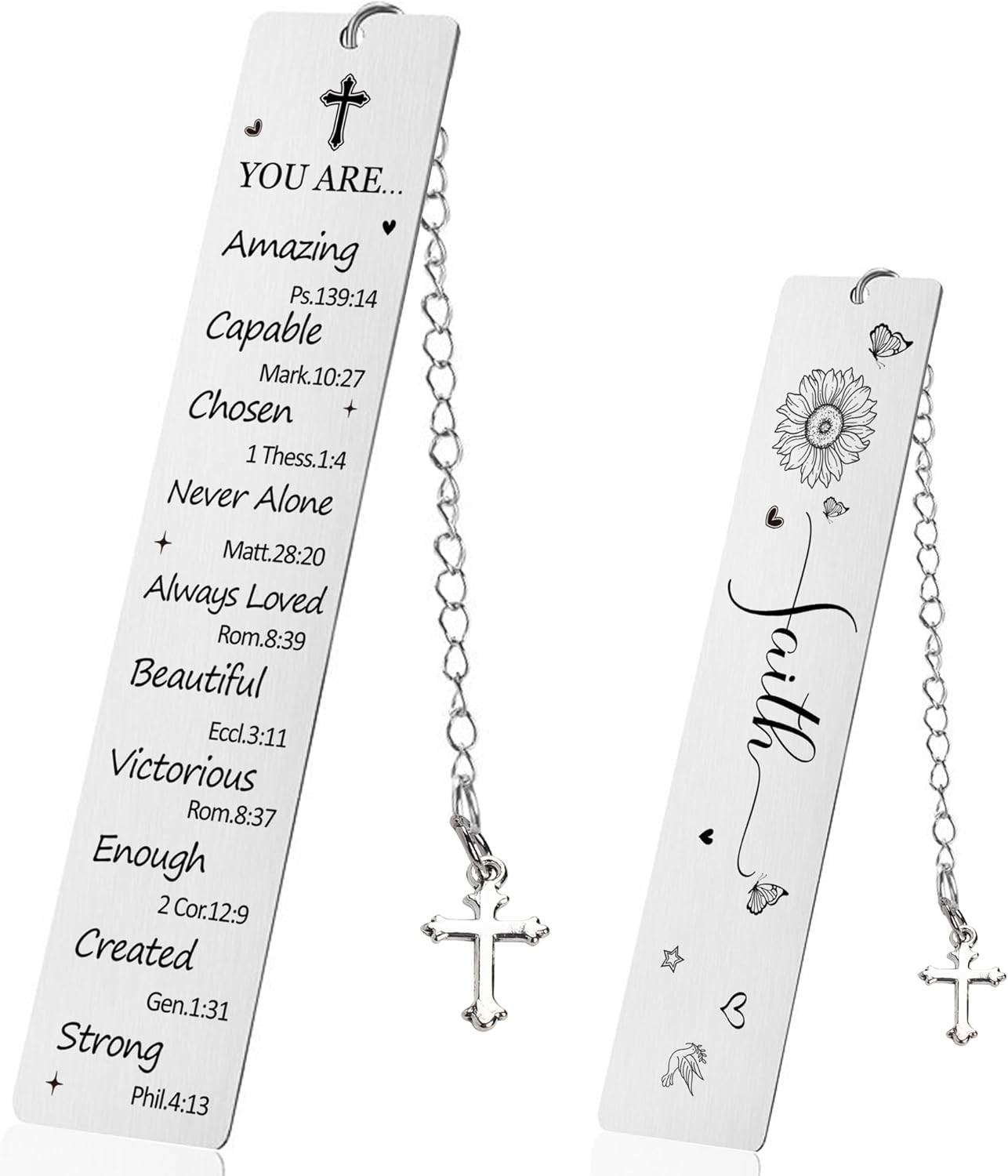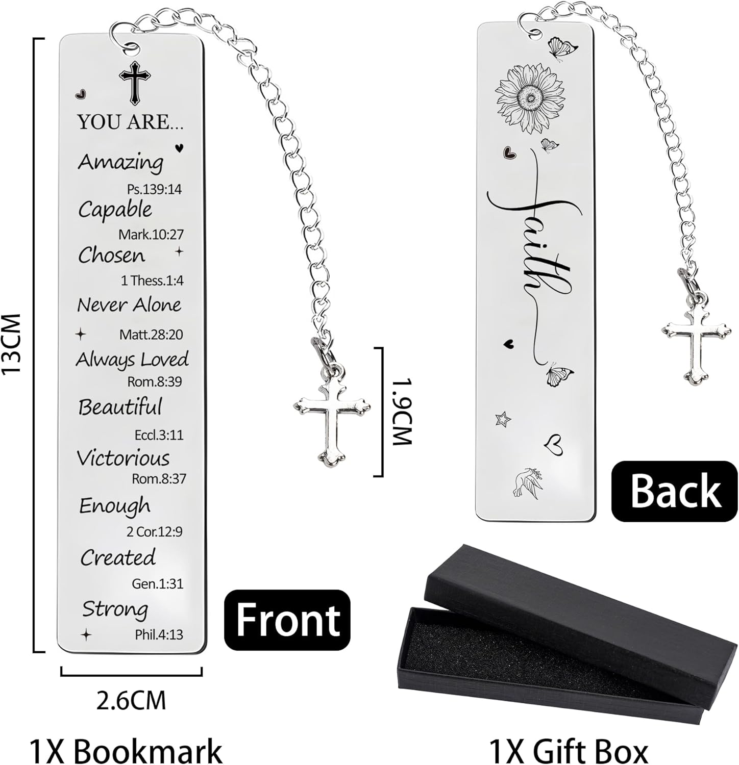 Christian Bookmark for Women - Metal Bible Book Marks with Scripture Verse and Cross Charm, Religious Faith Bookmarks Present for Baptism Christmas Birthday