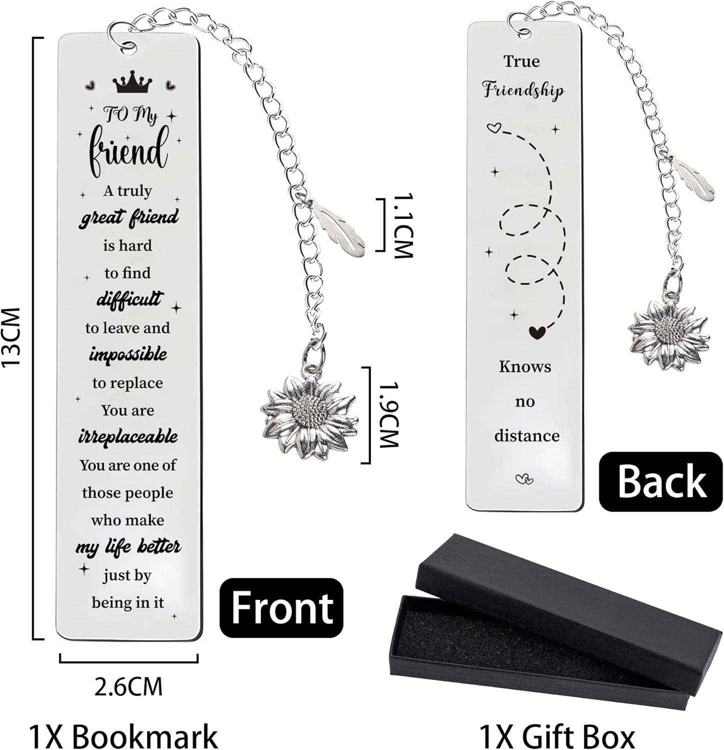 Best Friend Bookmark Gifts for Women - Metal Friendship Book Marks with Sunflower Charm, Long Distance BFF Present for Book Lovers Birthday Graduation Christmas Keepsake