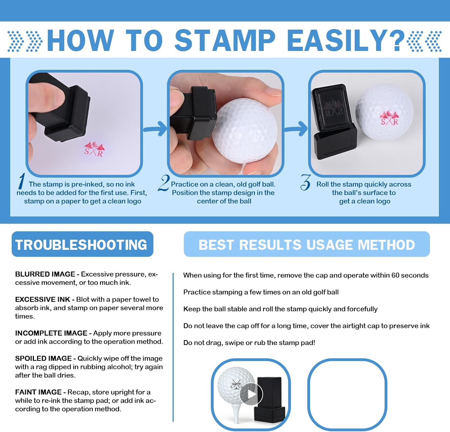 - Clear marking & durable use: Designed for long-term performance, this reusable self-inking golf ball stamp delivers clear, consistent prints. The waterproof ink dries fast and resists smudging, making it ideal for regular practice, swing training, and outdoor golf sessions in any condition.