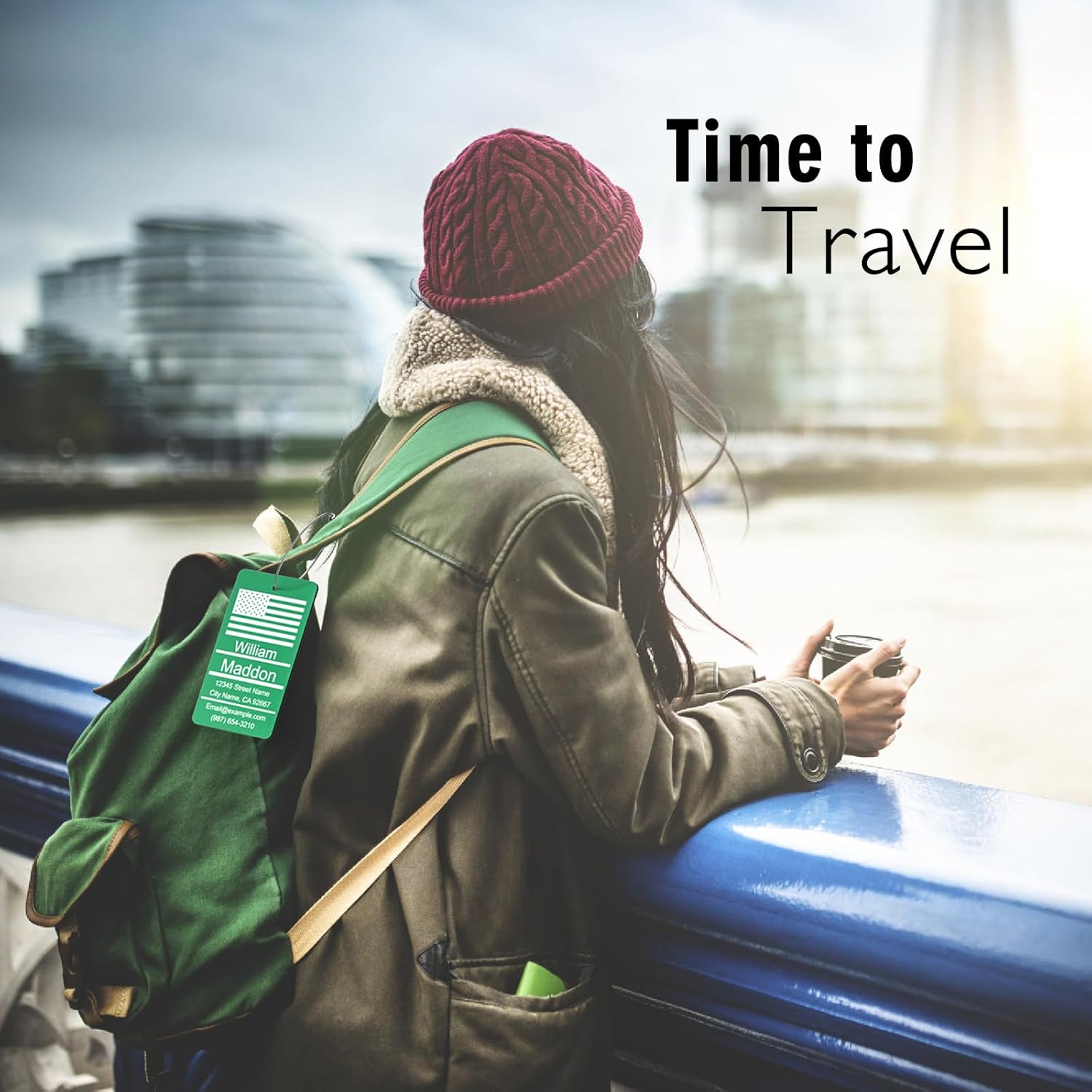 - STURDY MATERIALS: Crafted from durable aluminum and featuring a stainless steel loop, the personalized luggage tags are built to last. The matte finish adds a premium texture that is both attractive and tactile.