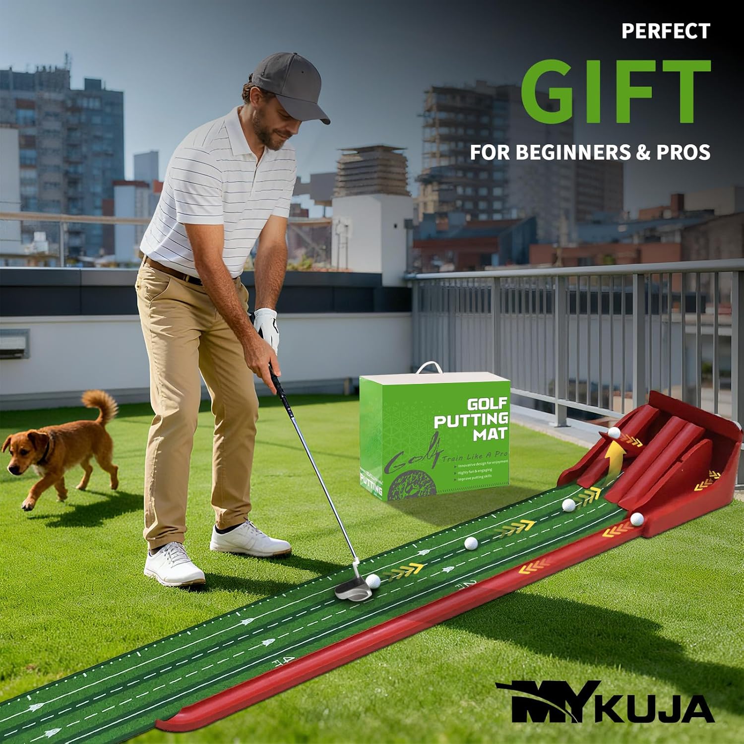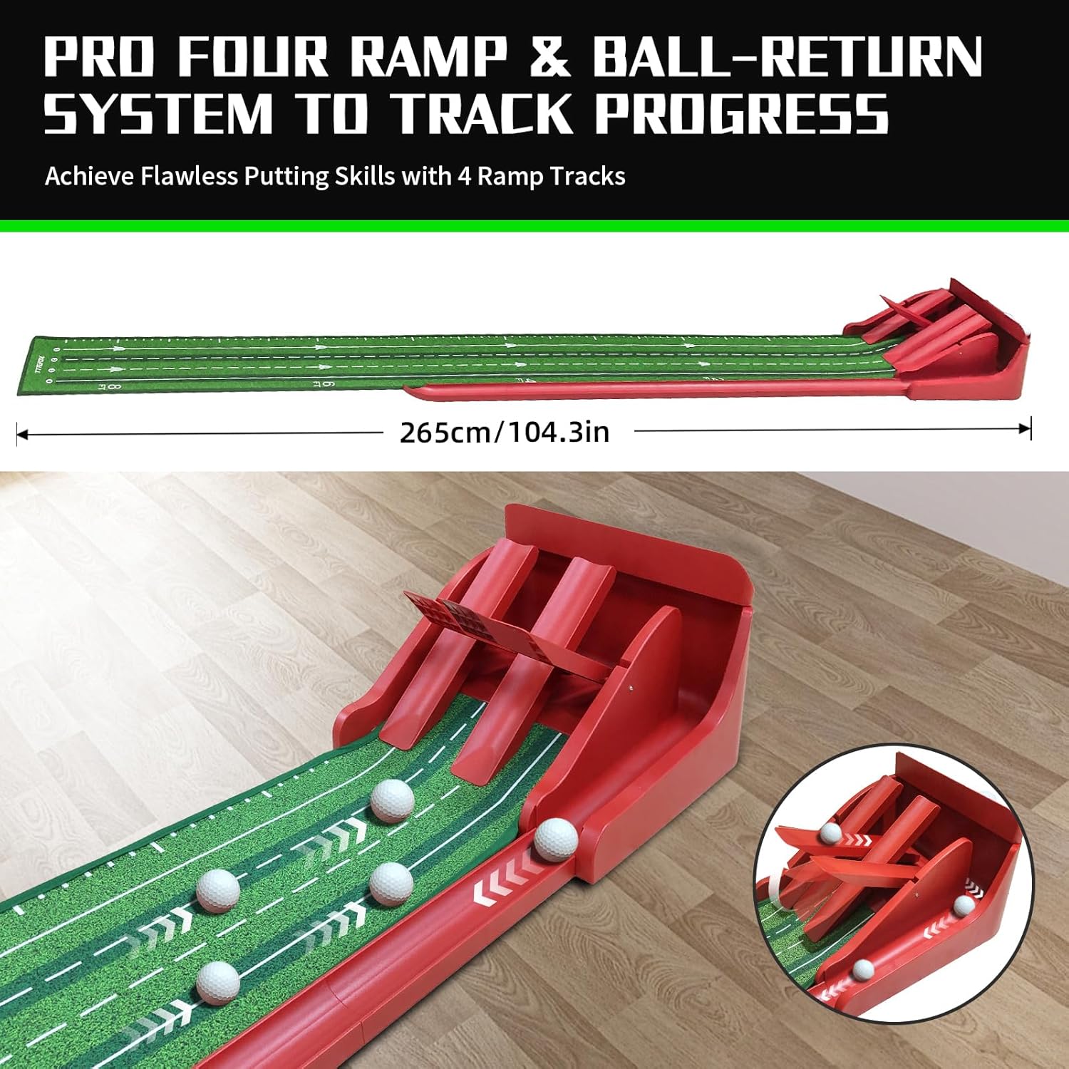Putting Green Indoor - Golf Putting Mat with 4 Automatic Ramp and Ball Return - Practice Game Golf Gifts for Home or Office and Golfers - Funny&Cool Gifts