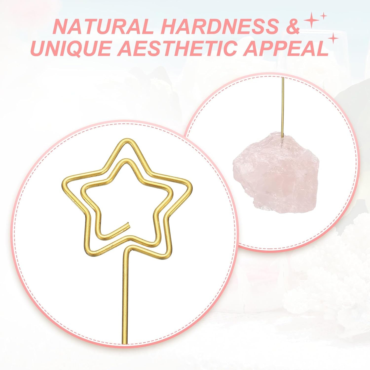 PATIKIL Table Number Holder, 1Pcs Photo Clip Holders Crystal Stone Quartz Desk Card Holder Raw Star Shape Iron Memo Note Photo Stand for Wedding Party Home Office Decor, Pink