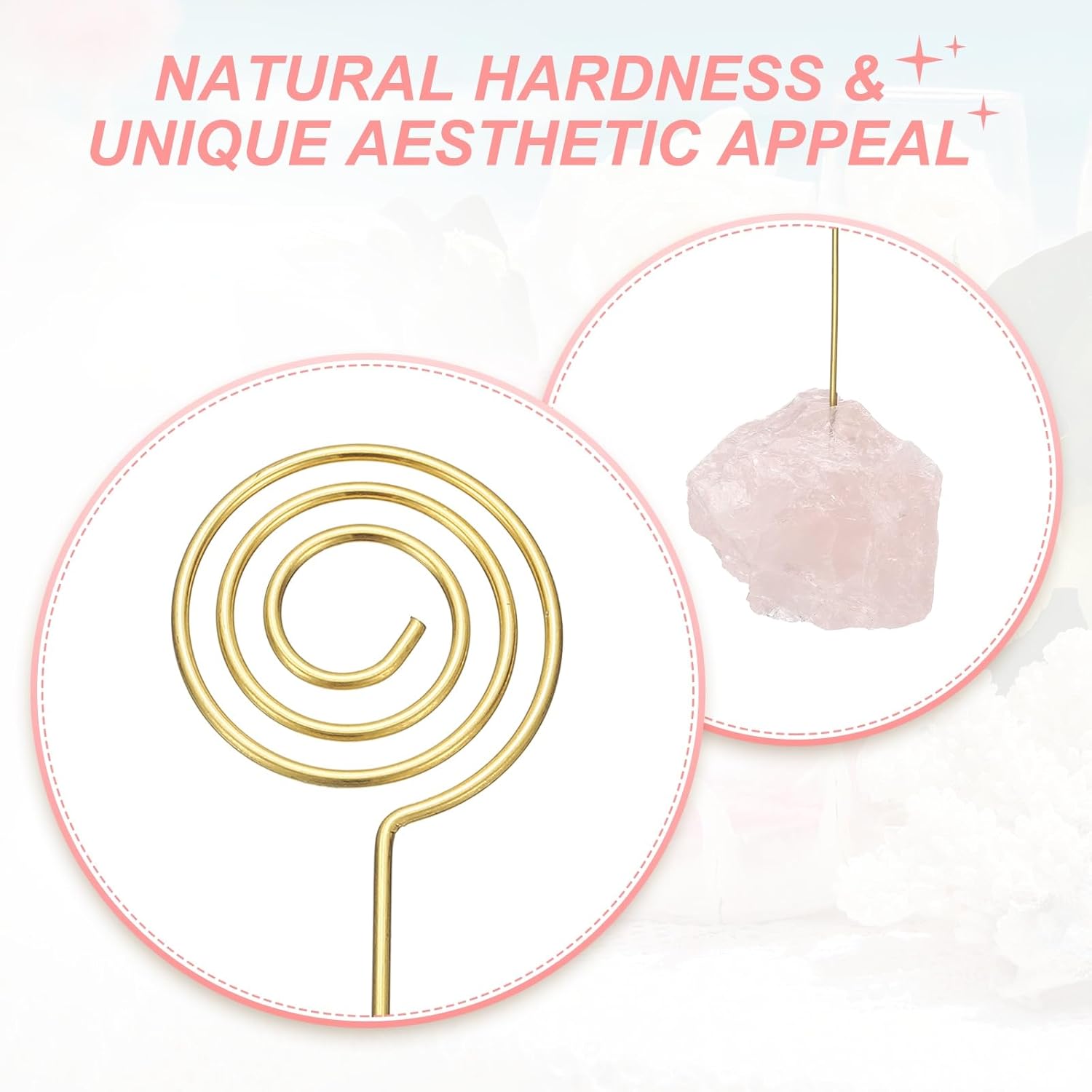 PATIKIL Table Number Holder, 2Pcs Photo Clip Holders Crystal Stone Quartz Desk Card Holder Raw Lollipop Shape Iron Memo Note Photo Stand for Wedding Party Home Office Decor, Pink
