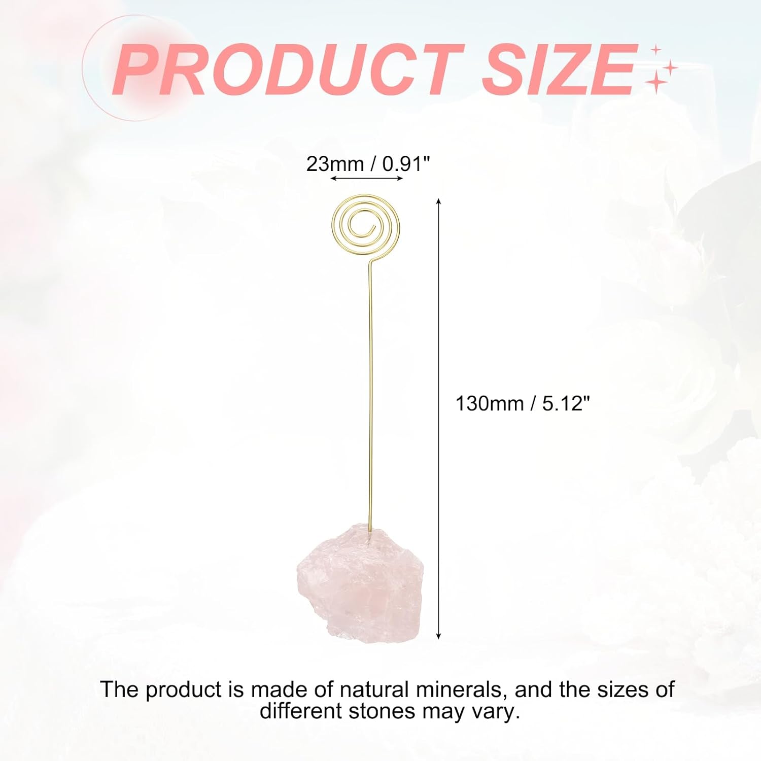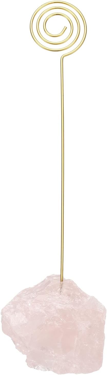 PATIKIL Table Number Holder, 1Pcs Photo Clip Holders Crystal Stone Quartz Desk Card Holder Raw Lollipop Shape Iron Memo Note Photo Stand for Wedding Party Home Office Decor, Pink