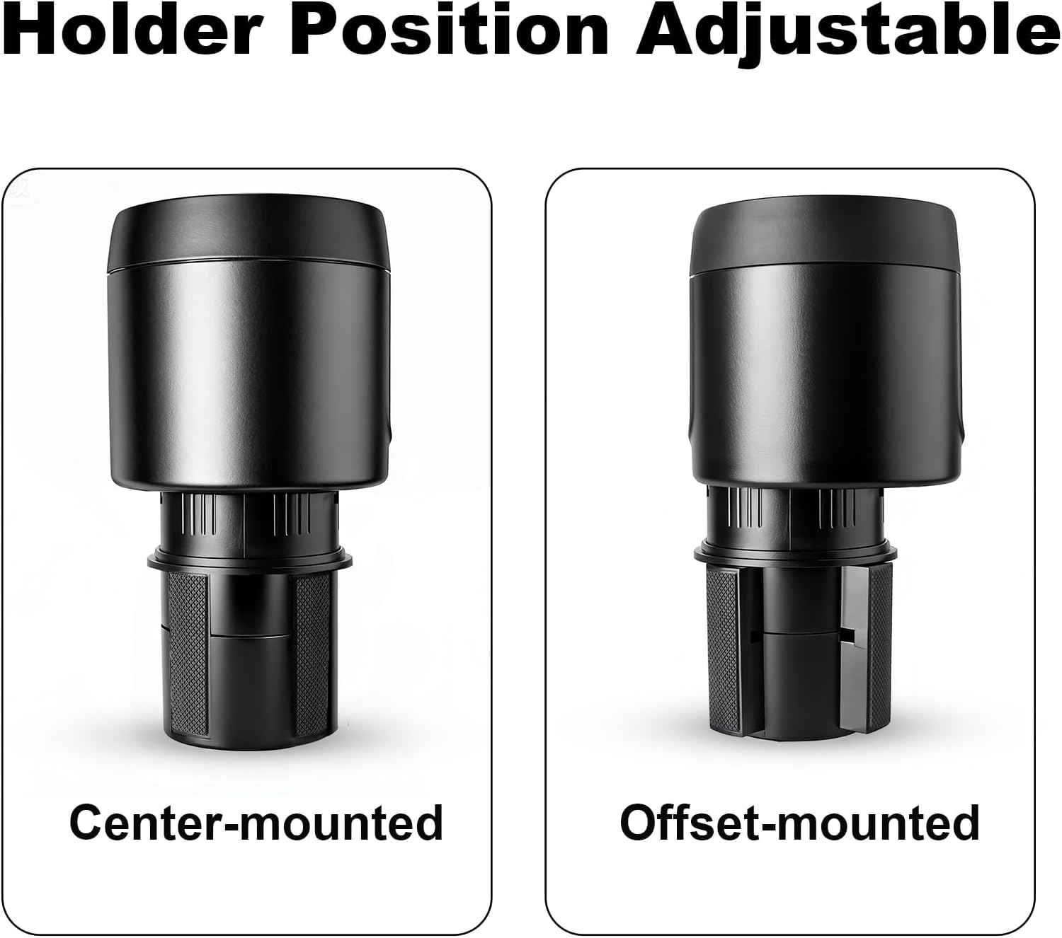- The adapter’s base can be center-mounted or offset-mounted by screws to adapt to different golf carts cup holder, prevents blocking adjacent cup holder’s use. Adjustable base is compatible with EZGO, Club Car, Yamaha & more golf carts