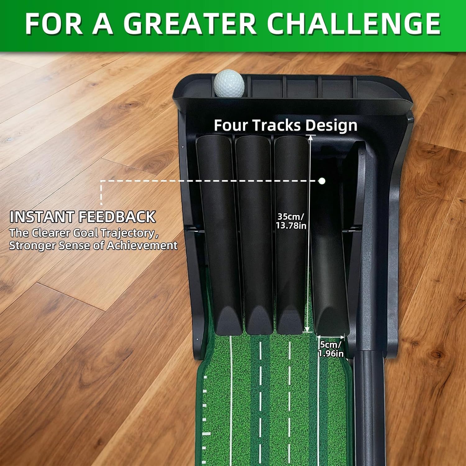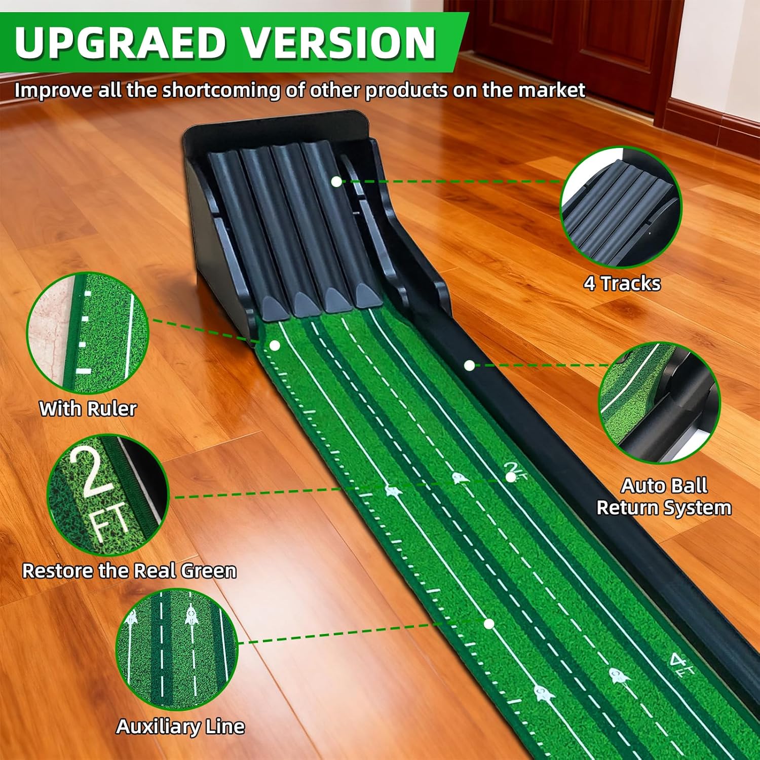- 【Automatic Ball Return & Wrinkle-Free Velvet Material】 Automatic Ball Return System lets you enjoy smooth, non-stop practice sessions. Our indoor putting green has a velvet surface with memory rubber at the bottom—it’s wrinkle-free, resistant to ball jamming, and highly durable. There’s no need to worry about wrinkles forming after long-term use. Our golf putting mat with inches and auxiliary lines simulates the challenges of a real golf course.