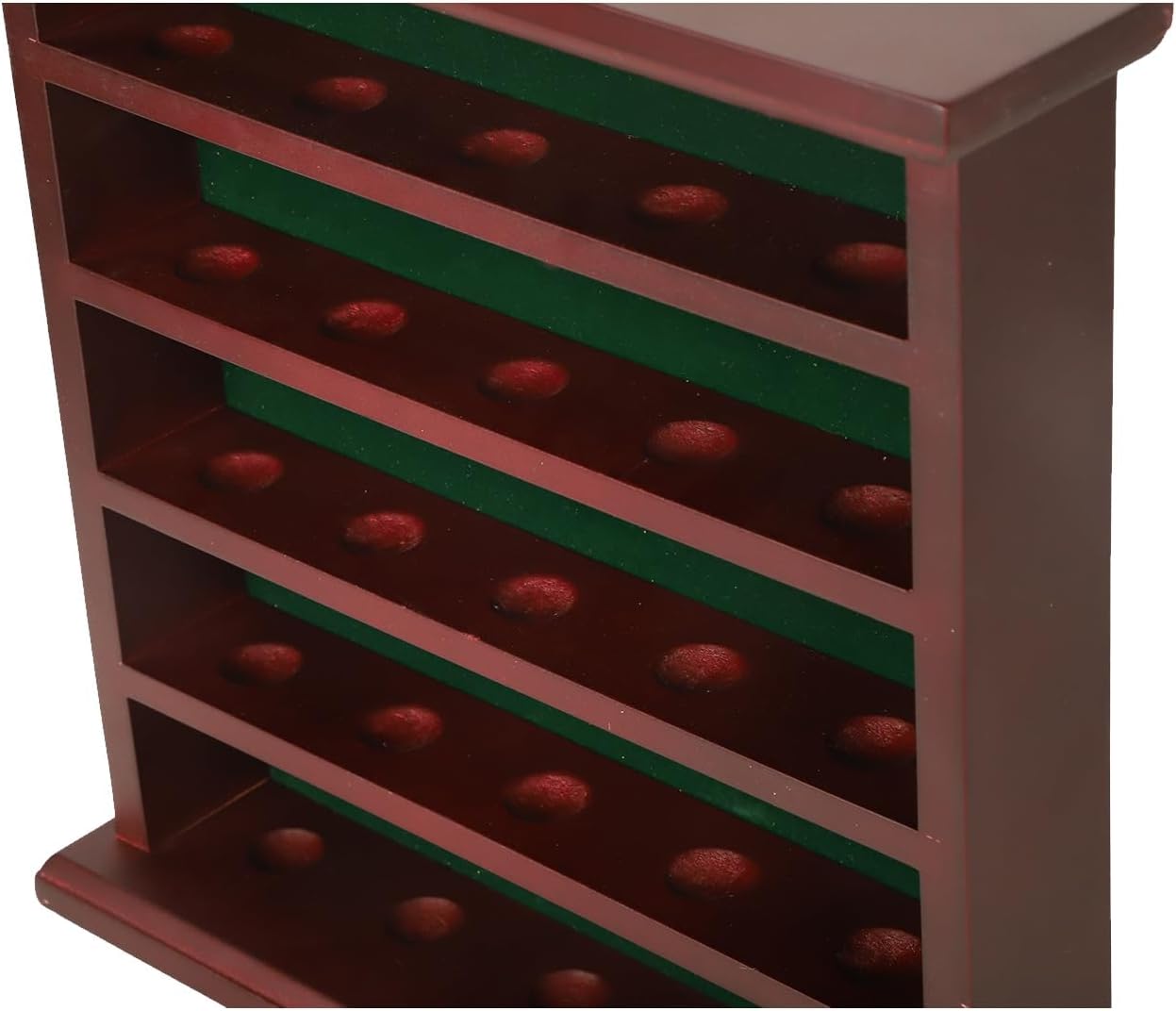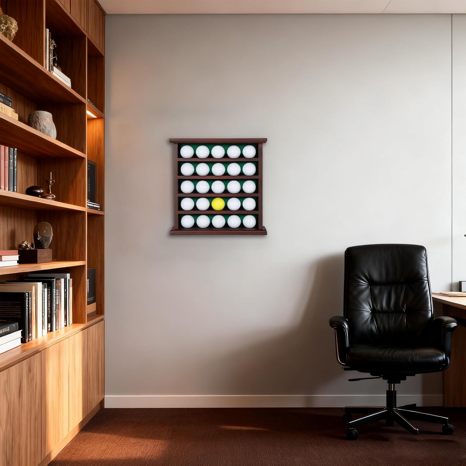 - ANTISKID DESIGN RACK - Golf ball display rack has 5 racks holding 25 golf balls on which have indentation to prevent golf balls from rolling. Elegant golf ball cabinet for holding souvenir and trophy balls from tournaments, events, games and courses you have golfed at. Golf ball case is finished with green lining like velvet felt which make it as a high-end home decor.
