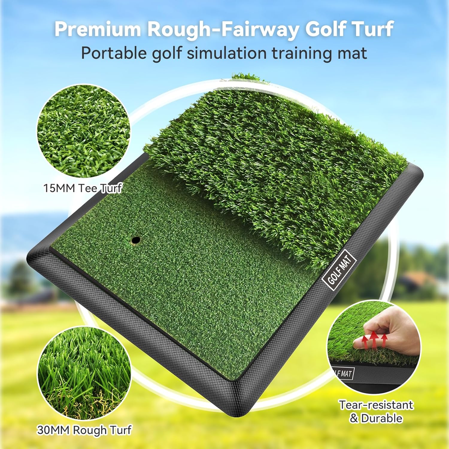 - Durable golf accessories with Non-Slip & Wear-Resistant Design:Crafted as long-lasting SPORTING GOODS, this golf mat features high-quality hitting turf that resists wear and tear, enduring repeated hits without deformation. The thick rubber backing at the bottom ensures a strong grip on the ground, preventing slips during swings, which keeps you safe and focused on practice.