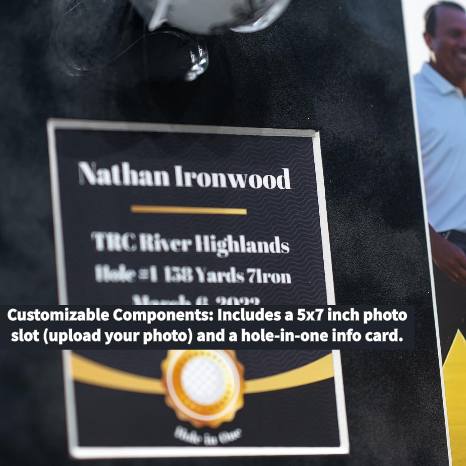 One-Shot Victory Golf Ball Display Frame – Acrylic Case with External Ball Mount, Custom Photo & Nameplate, Black Suede Mat, Elegant Golf Keepsake Gift