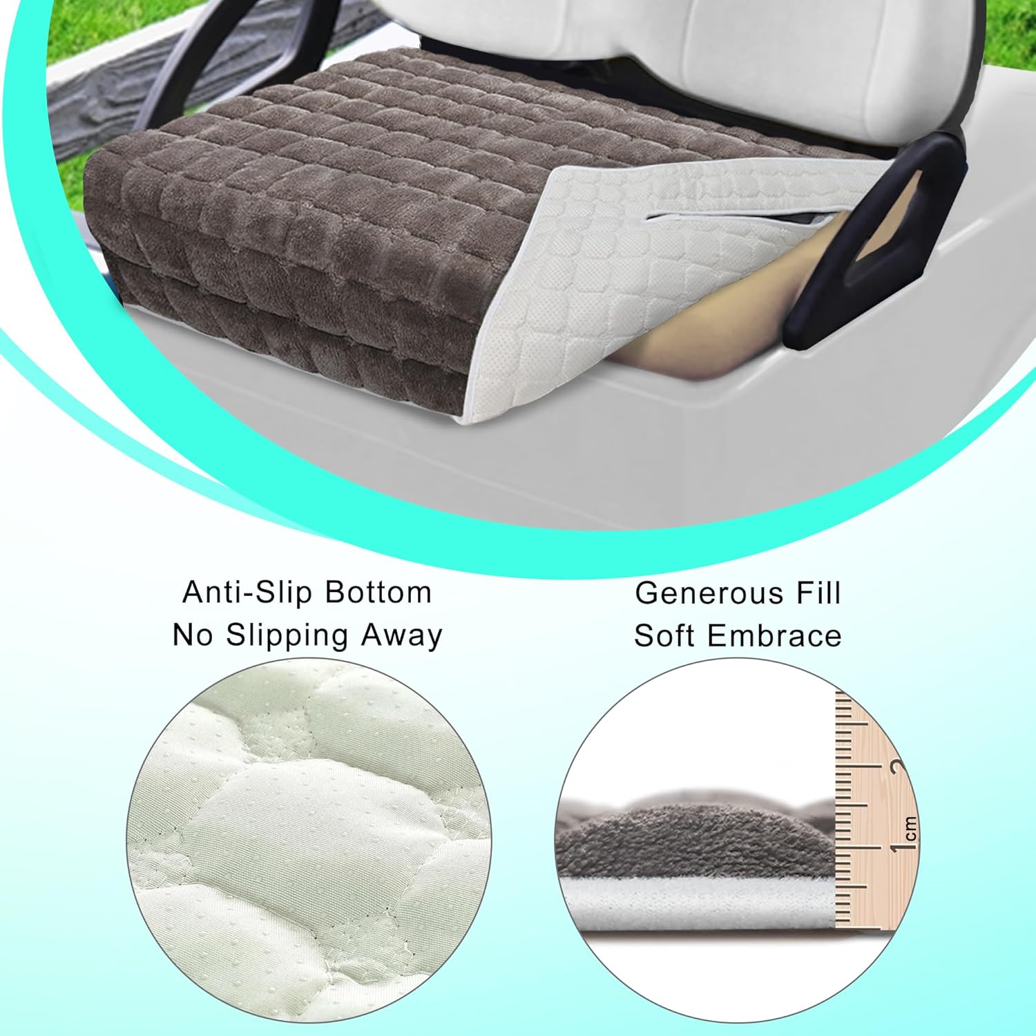 - 【Plush Material】This golf cart seat cover features a plush, velvety-soft surface and silk cotton filling for warmth. Non-slip backing keeps it securely in place.
