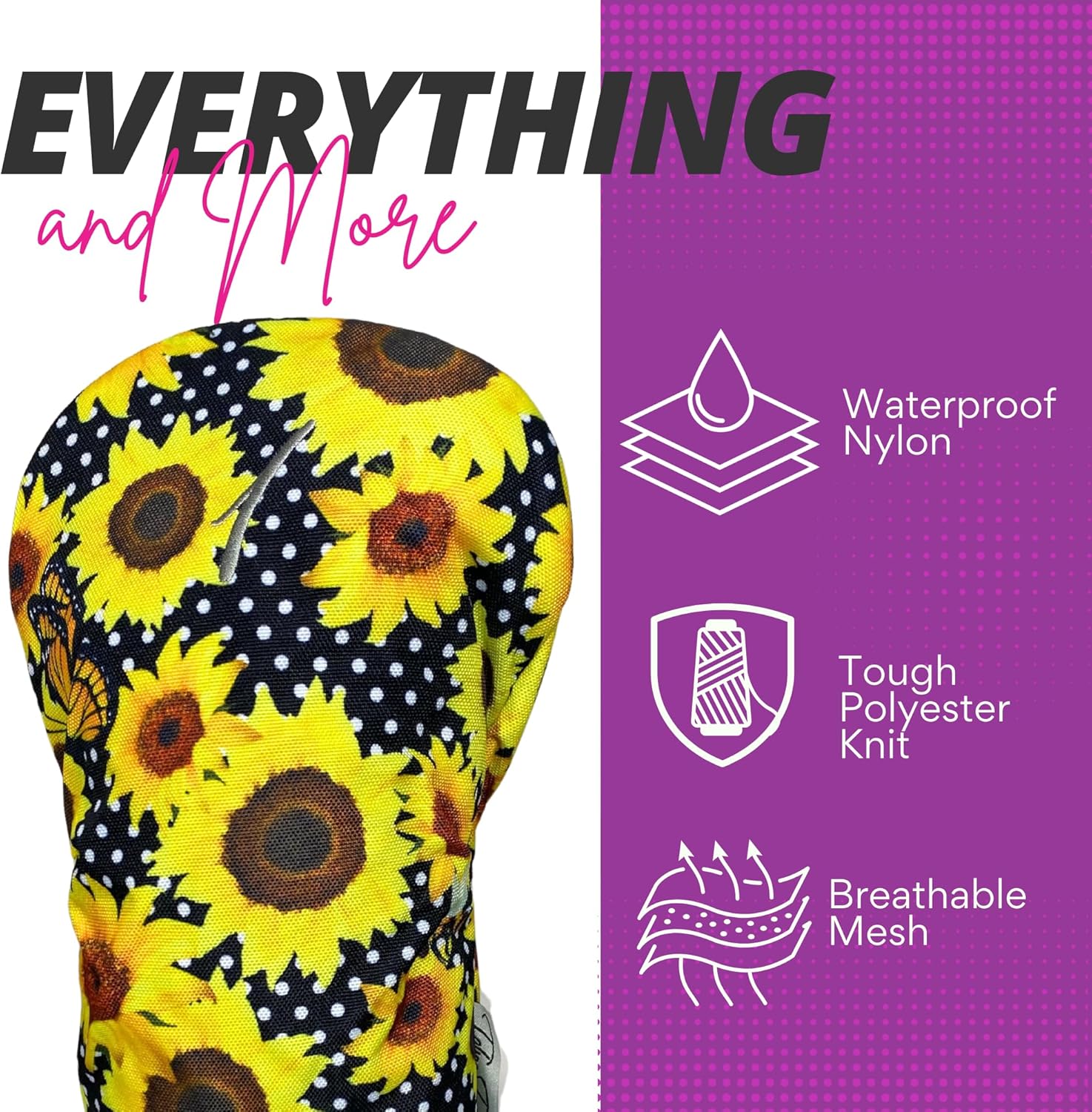 - HEAVY DUTY, WATERPROOF PROTECTION: Crafted from a premium blend of waterproof nylon, polyester knit, and breathable mesh, these ladies golf club covers shield clubs from rain, dew, and everyday wear. A soft velour lining provides extra cushioning to prevent dents, scratches, and damage during transport.
