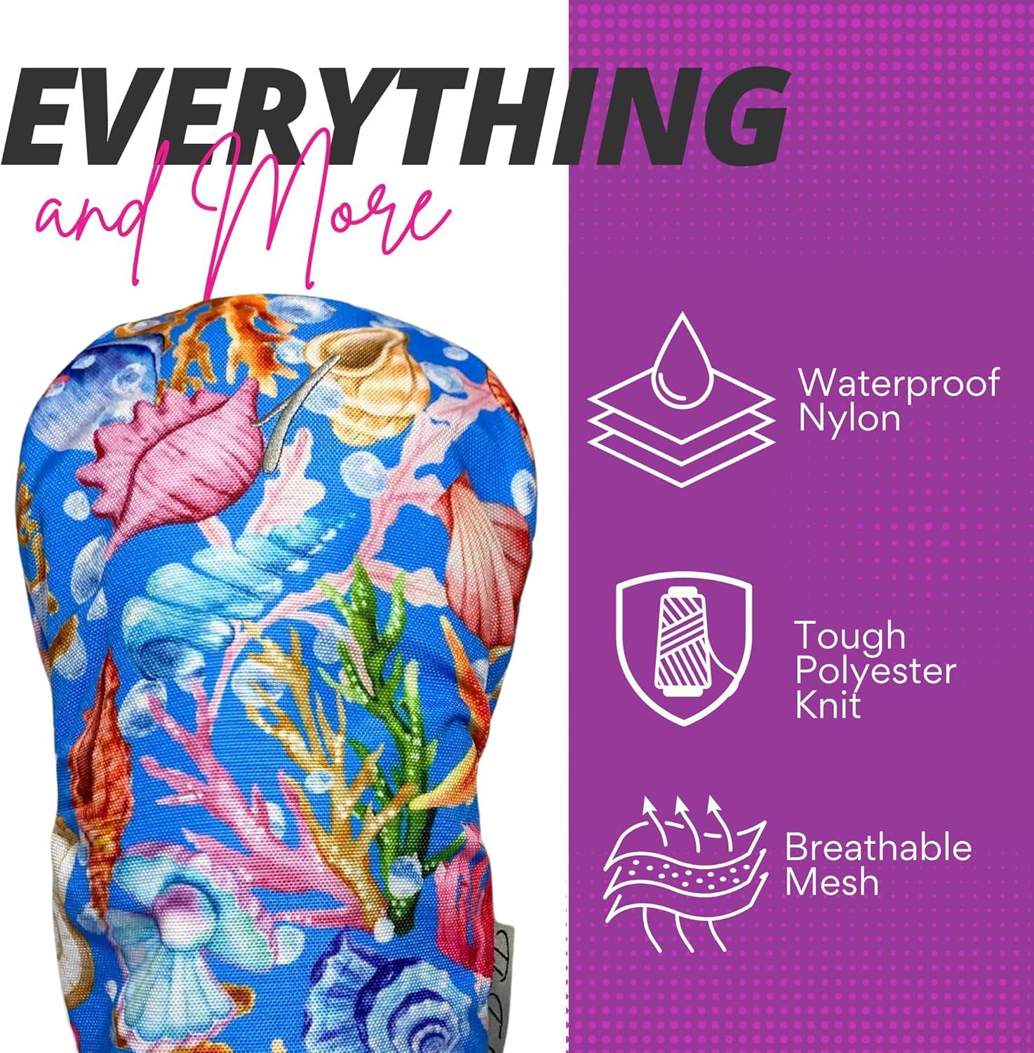 - HEAVY DUTY, WATERPROOF PROTECTION: Crafted from a premium blend of waterproof nylon, polyester knit, and breathable mesh, these ladies golf club covers shield clubs from rain, dew, and everyday wear. A soft velour lining provides extra cushioning to prevent dents, scratches, and damage during transport.