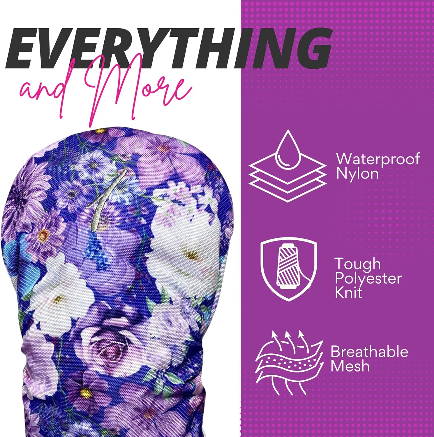- HEAVY DUTY, WATERPROOF PROTECTION: Crafted from a premium blend of waterproof nylon, polyester knit, and breathable mesh, these ladies golf club covers shield clubs from rain, dew, and everyday wear. A soft velour lining provides extra cushioning to prevent dents, scratches, and damage during transport.