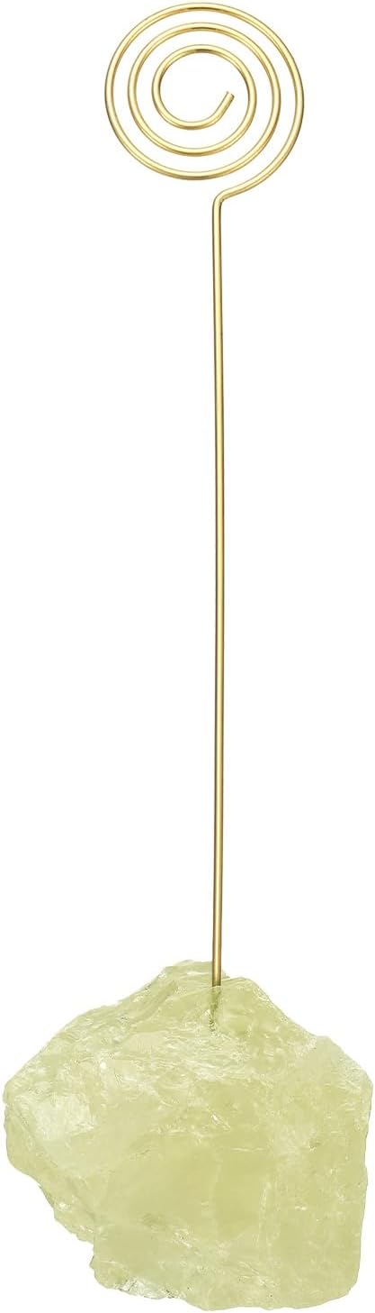 PATIKIL Table Number Holder, 1Pcs Photo Clip Holders Crystal Stone Quartz Desk Card Holder Raw Lollipop Shape Iron Memo Note Photo Stand for Wedding Party Home Office Decor, Yellow