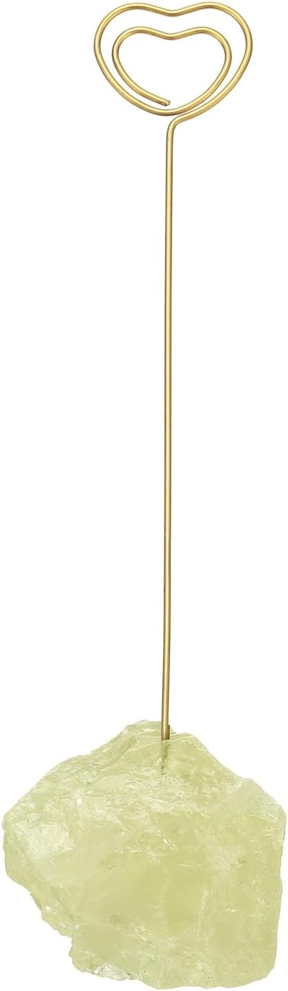 - Color: Yellow; Material: Quartz Raw, Alloy; Clip Style: Heart Shape; Size: 130 x 23 mm / 5.12 x 0.91 Inch (L x W); Packing List: 1 Pcs x Crystal Desk Card Holders