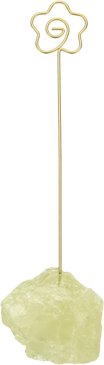 PATIKIL Table Number Holder, 1Pcs Photo Clip Holders Crystal Stone Quartz Desk Card Holder Raw Flower Shape Iron Memo Note Photo Stand for Wedding Party Home Office Decor, Yellow
