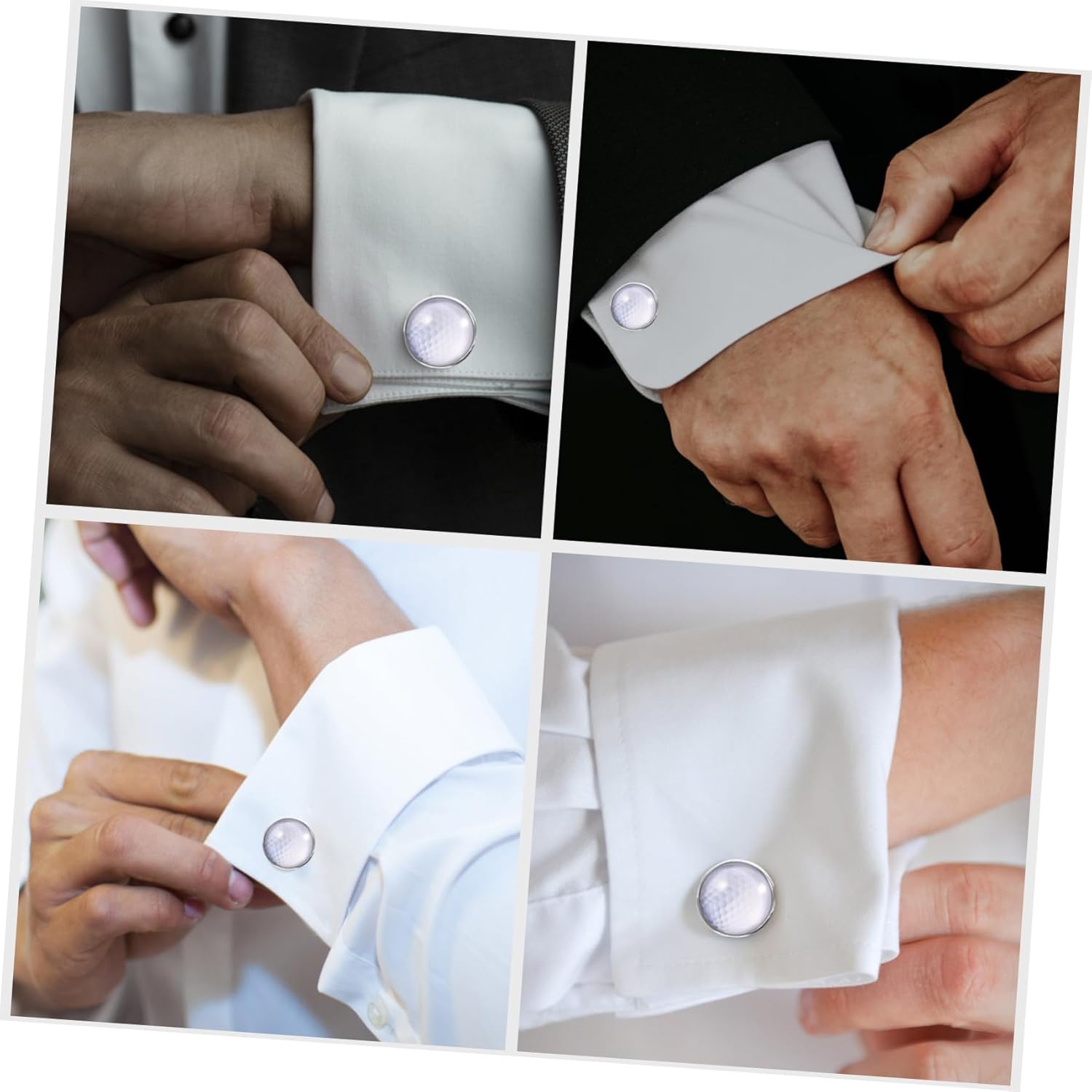 Silver Metal Golf Cufflinks for Men Shirt Accessories with Crystal Glass Gemstone Design Classic and Sturdy Fashion Buttons for Wedding Business and Formal Wear