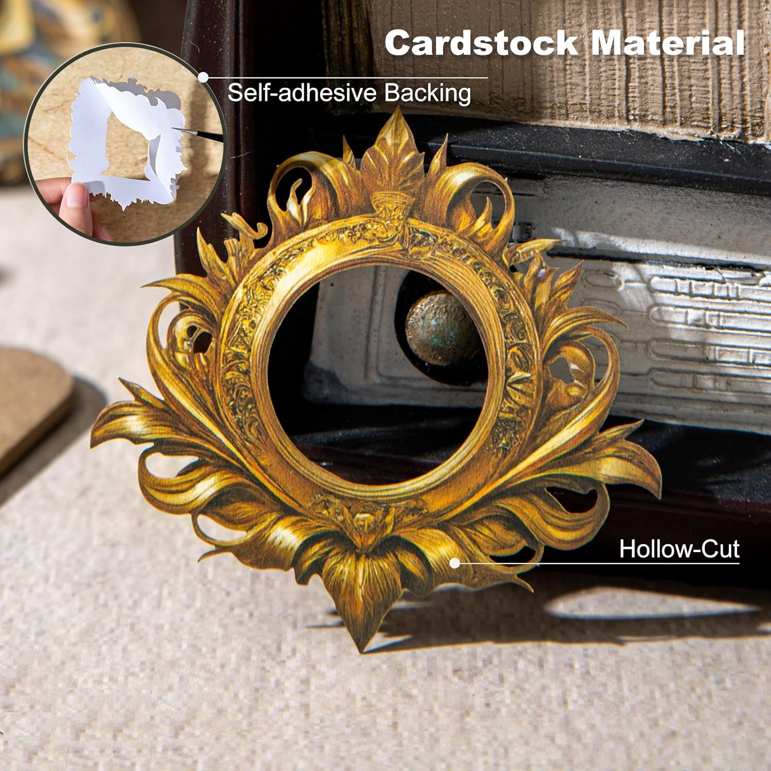 Medieval Frame Stickers – 60 Hollow-Cut Cardstock Stickers for Scrapbook & Journal, Vintage Self-Adhesive Embellishments for Junk Journal, DIY Art & Collage Design