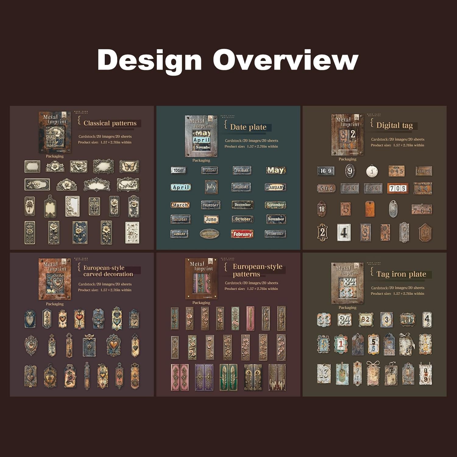 - Embossed Metal Visual Effect: Each design mimics aged iron brass or copper textures with a realistic faux embossing look that adds artistic character and depth to any collage or paper craft project