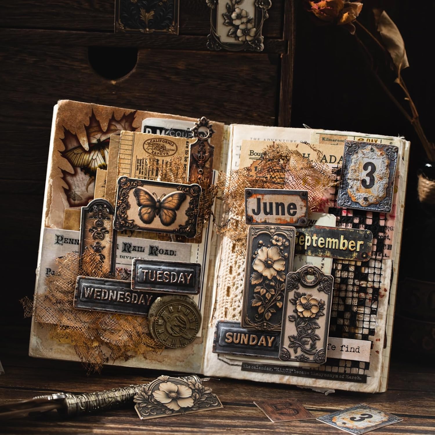 - Diverse Retro Designs: 120pcs stickers in 6 unique vintage styles including number tags date plates European carvings and ornate frames ideal for enriching scrapbook and junk journal pages with layered visual depth