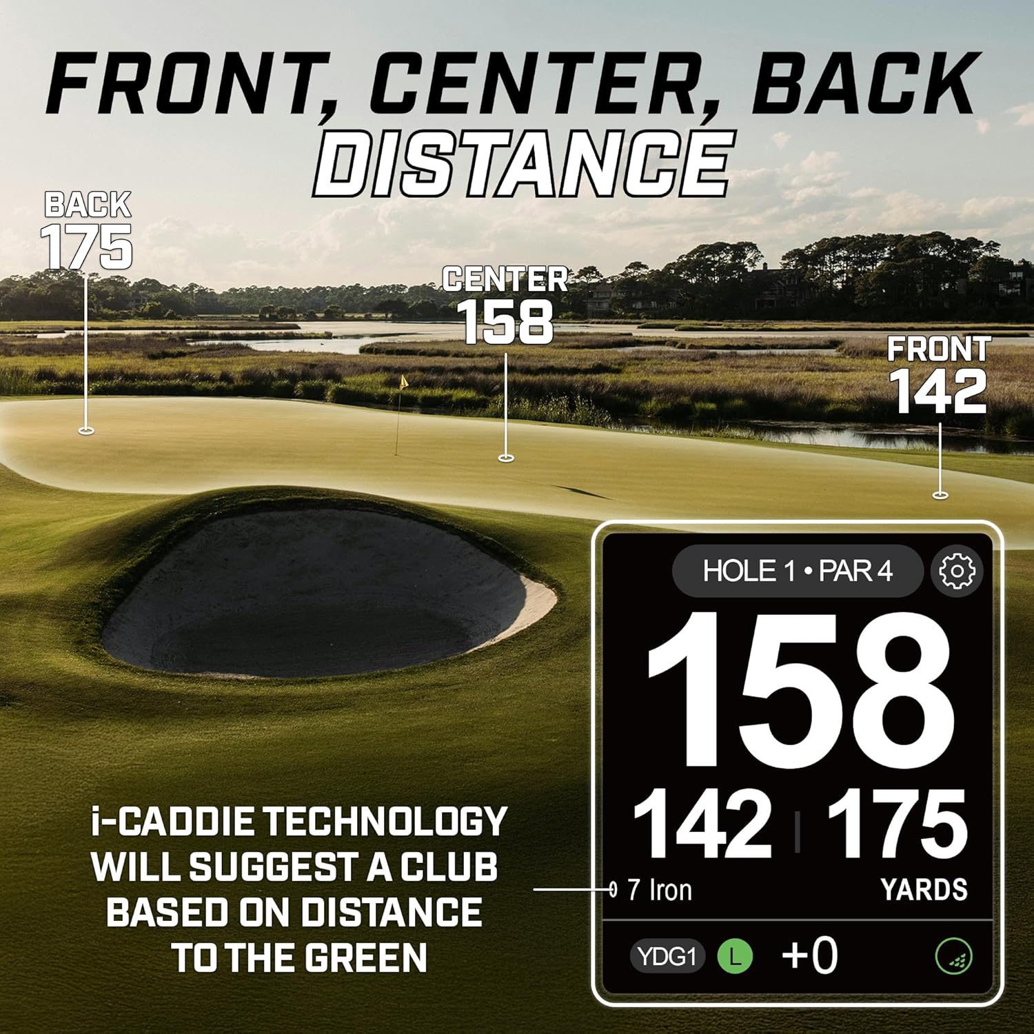 - Advanced Features for Smarter Play – Includes Auto-Hole Advance, Shot Distance Measurement, and a built-in Digital Scorecard. I-Caddie technology even suggests clubs based on your target distance.