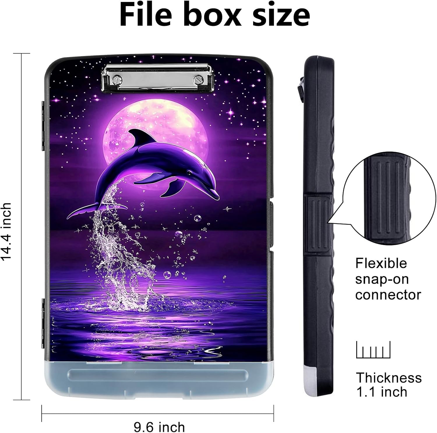 Clipboard with Storage - Large Capacity,Nursing Clipboard with Pen Holder,Heavy Duty,Plastic Side-Opening Folder for Teacher,Nurse - Purple Moon Dolphin Jumping
