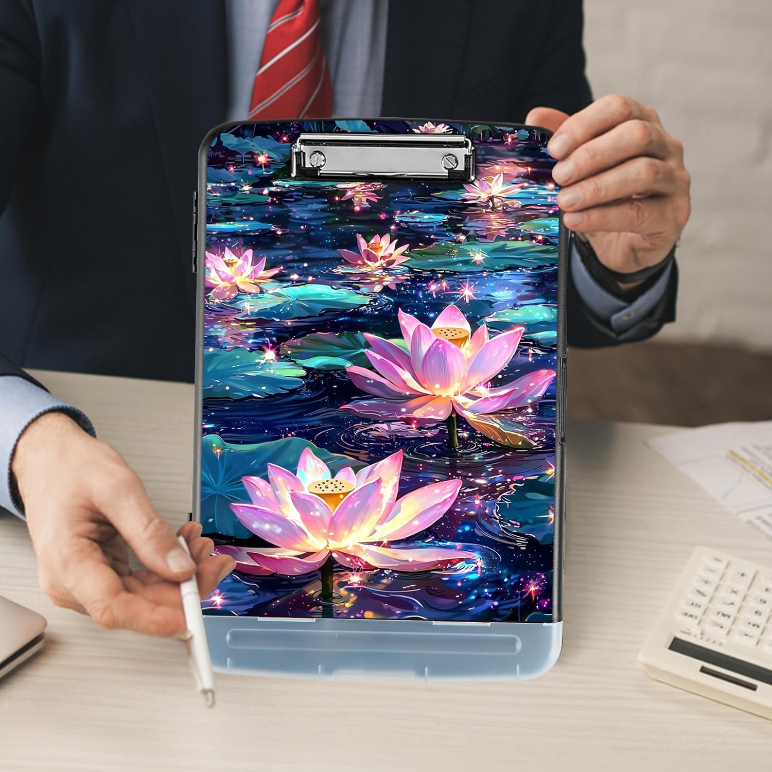 Clipboard with Storage - Large Capacity,Nursing Clipboard with Pen Holder,Heavy Duty,Plastic Side-Opening Folder for Teacher,Nurse - Lotus in The Pond