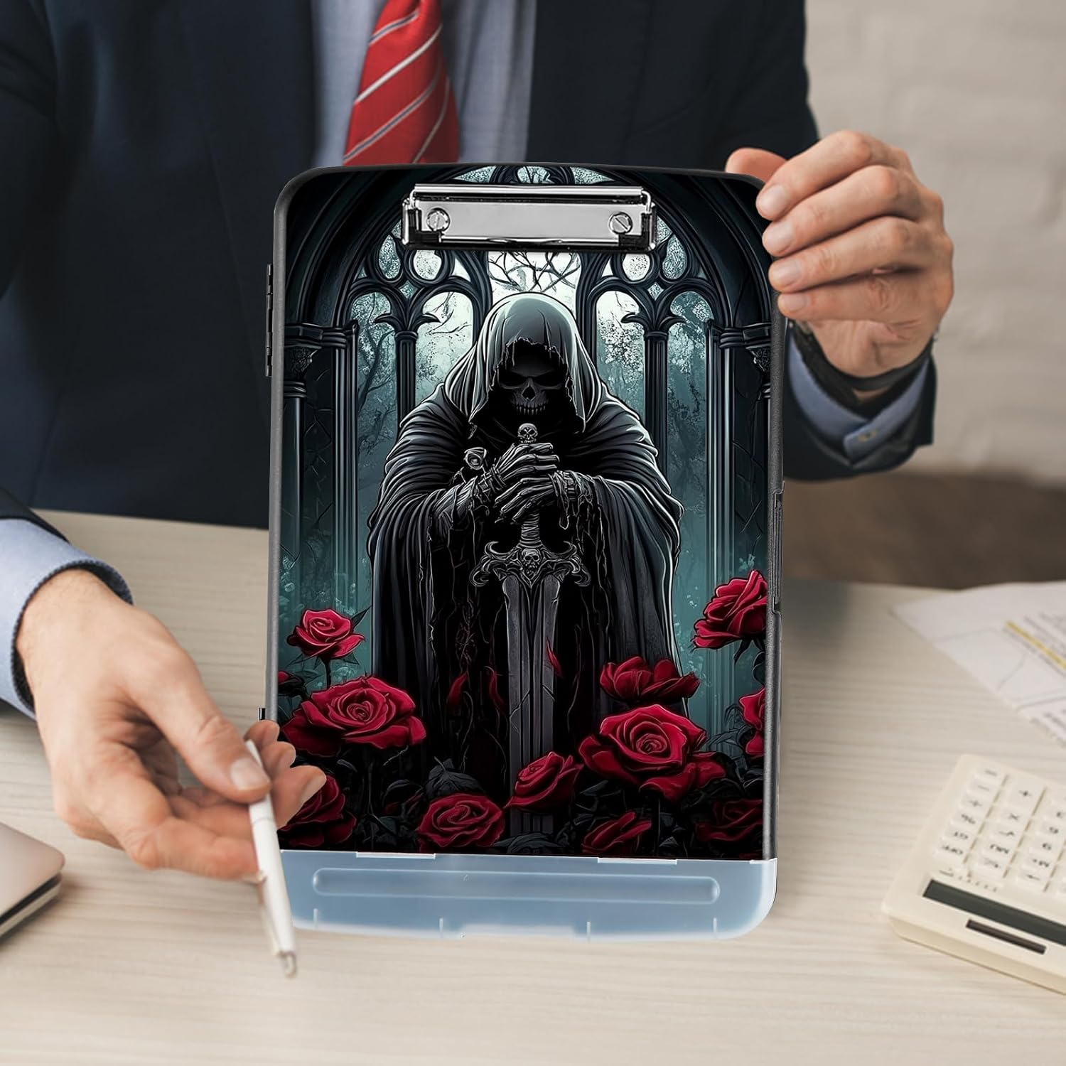 Clipboard with Storage - Large Capacity,Nursing Clipboard with Pen Holder,Heavy Duty,Plastic Side-Opening Folder for Teacher,Nurse - Knight and Sword