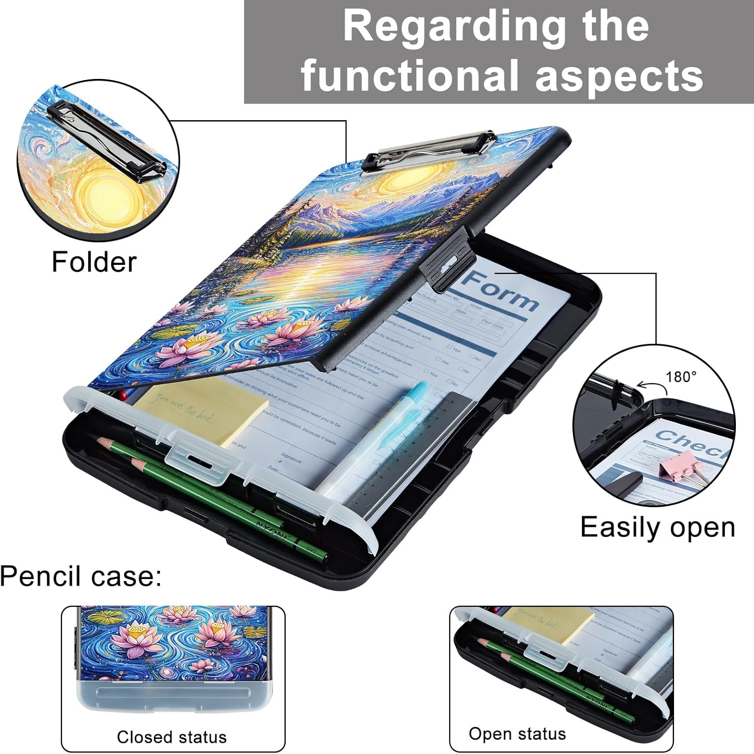 Clipboard with Storage - Large Capacity,Nursing Clipboard with Pen Holder,Heavy Duty,Plastic Side-Opening Folder for Teacher,Nurse - Lotus Sun Lake