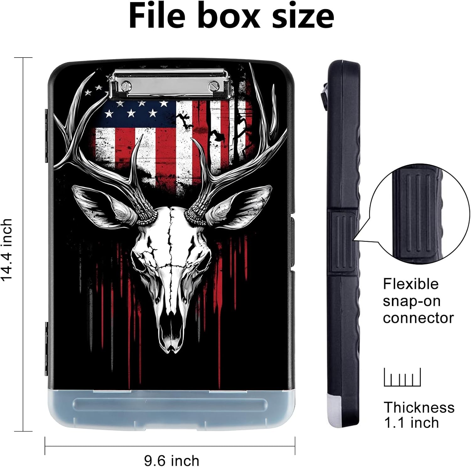 Clipboard with Storage - Large Capacity,Nursing Clipboard with Pen Holder,Heavy Duty,Plastic Side-Opening Folder for Teacher,Nurse - Deer Skull American Flag