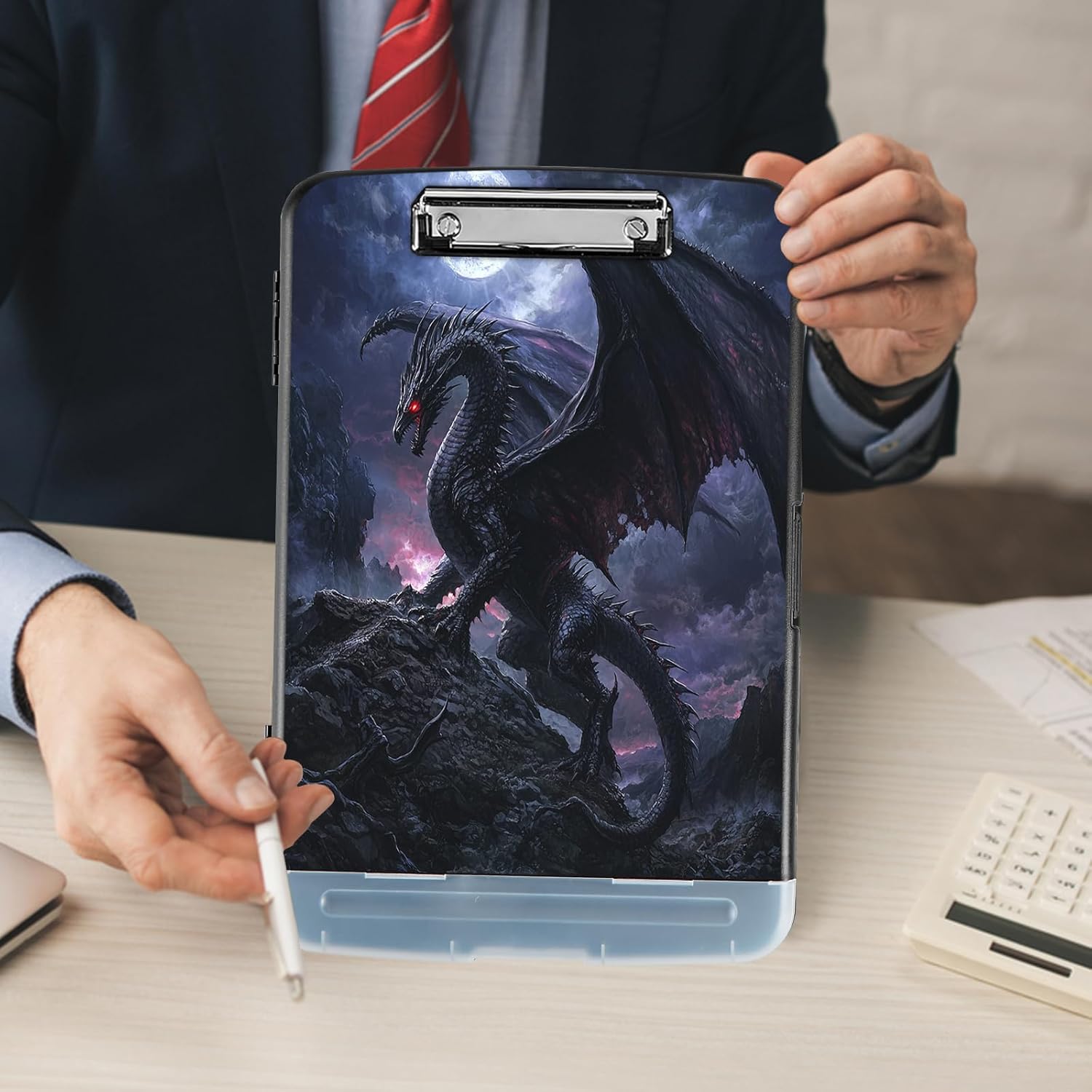 Clipboard with Storage - Large Capacity,Nursing Clipboard with Pen Holder,Heavy Duty,Plastic Side-Opening Folder for Teacher,Nurse - Black Dragon