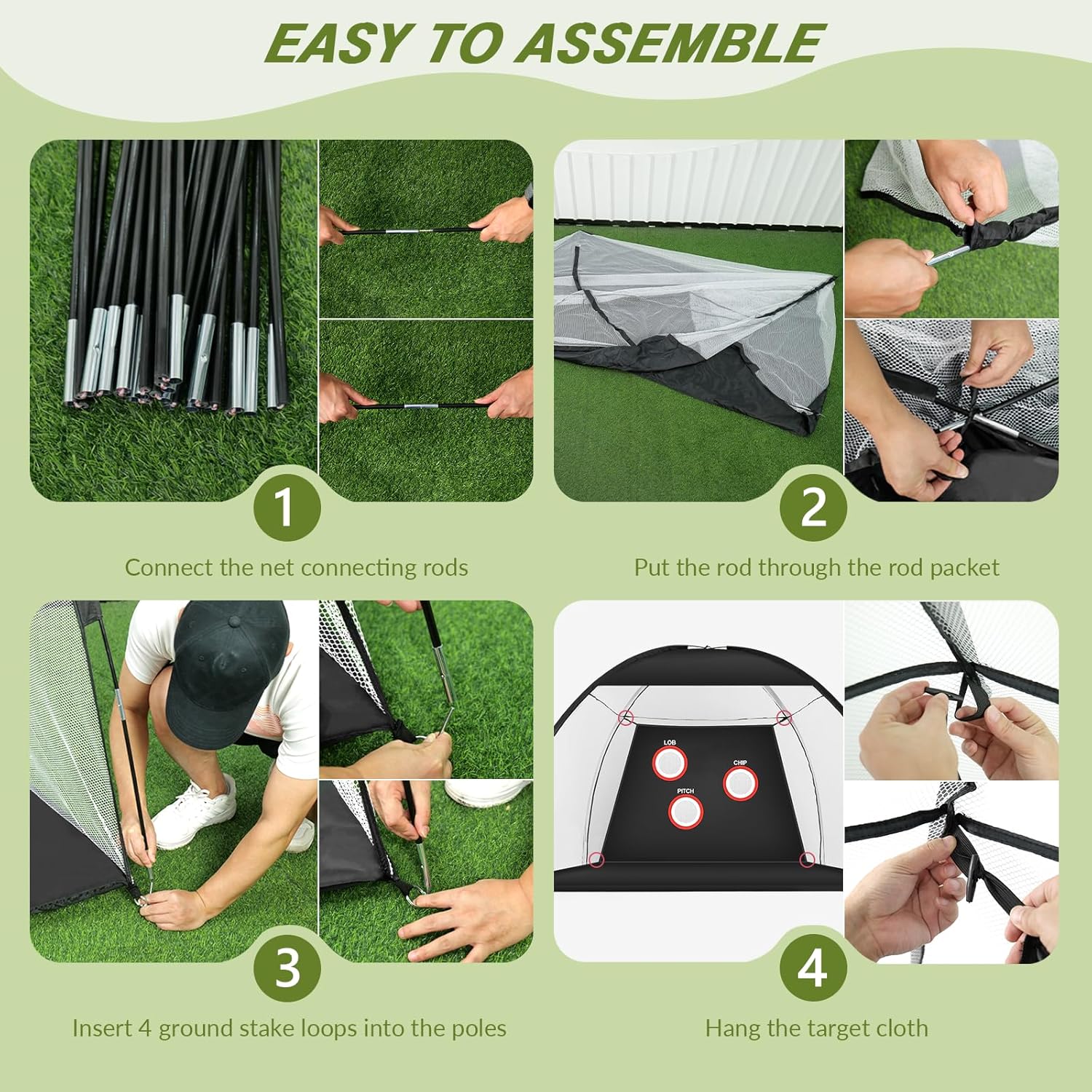 - 【Easy Assembly & Portability】The net can be set up in a few simple steps (connect rods, put through rod packet, insert ground stakes, hang target cloth). It comes with a carrying bag for easy transport,