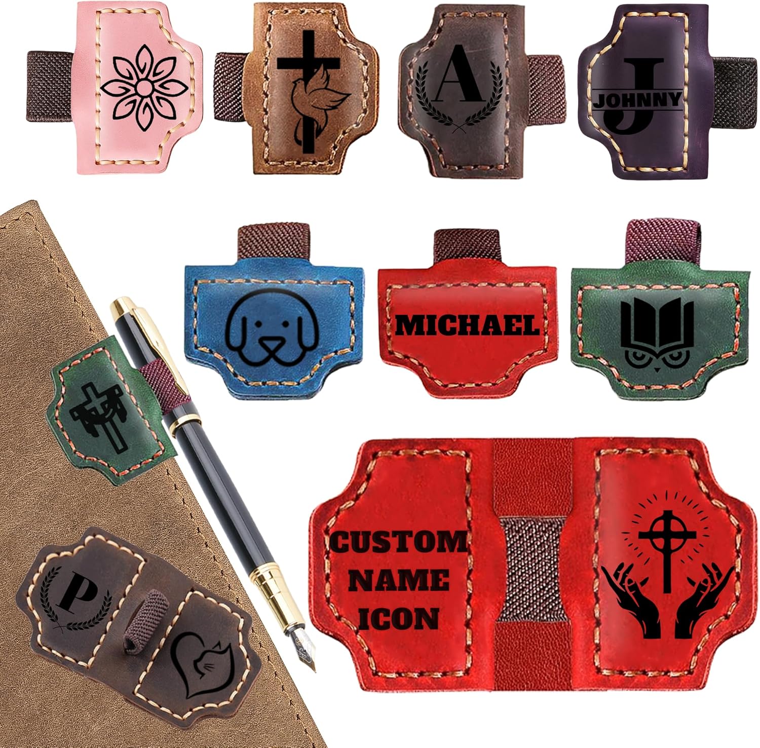 Personalized Magnetic Leather Bookmarks with Pen Holder Custom Vintage Book Accessory with Name Logo Text Icon Christmas Gifts for Readers Men Women Kids Lovers