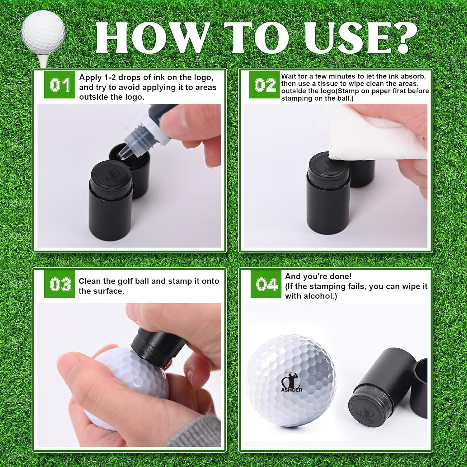 - High Quality & Waterproof: Our custom golf ball stamps are made from high-quality, durable materials. The ink is waterproof and quick-drying, allowing use in all weather conditions, ensuring your mark remains visible and intact throughout your game.