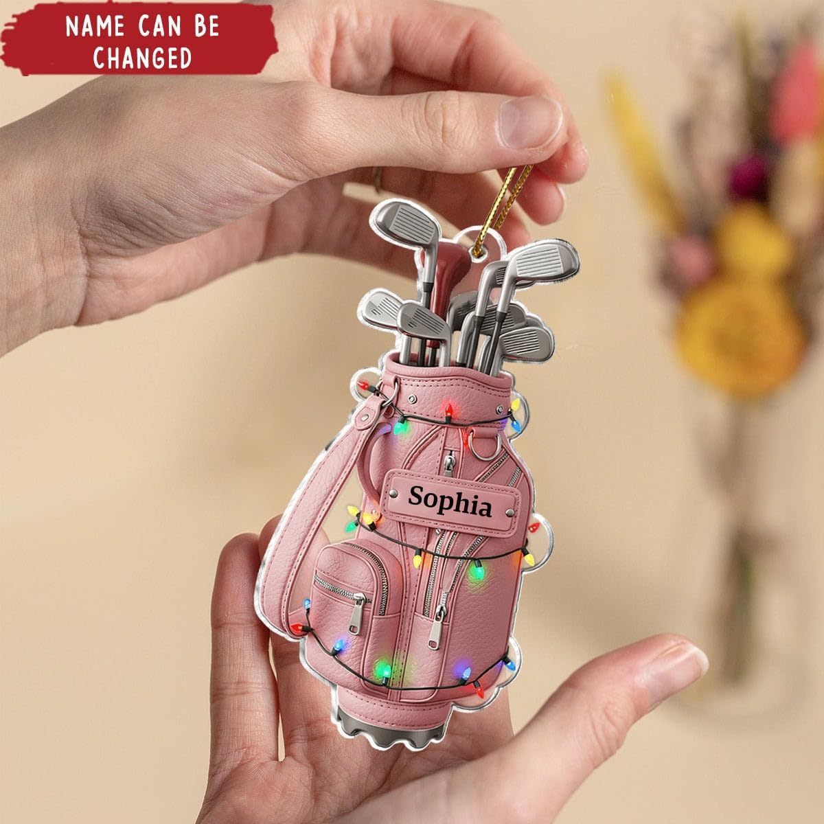 NAZENTI Personalized Golf Bag Lights Christmas Ornament 2025, Custom Name Golf Bag, Customization Golf Bag and Irons Decoration for Xmas Tree, Golfing Keepsake Gift for Golfer & Golf Player Lover