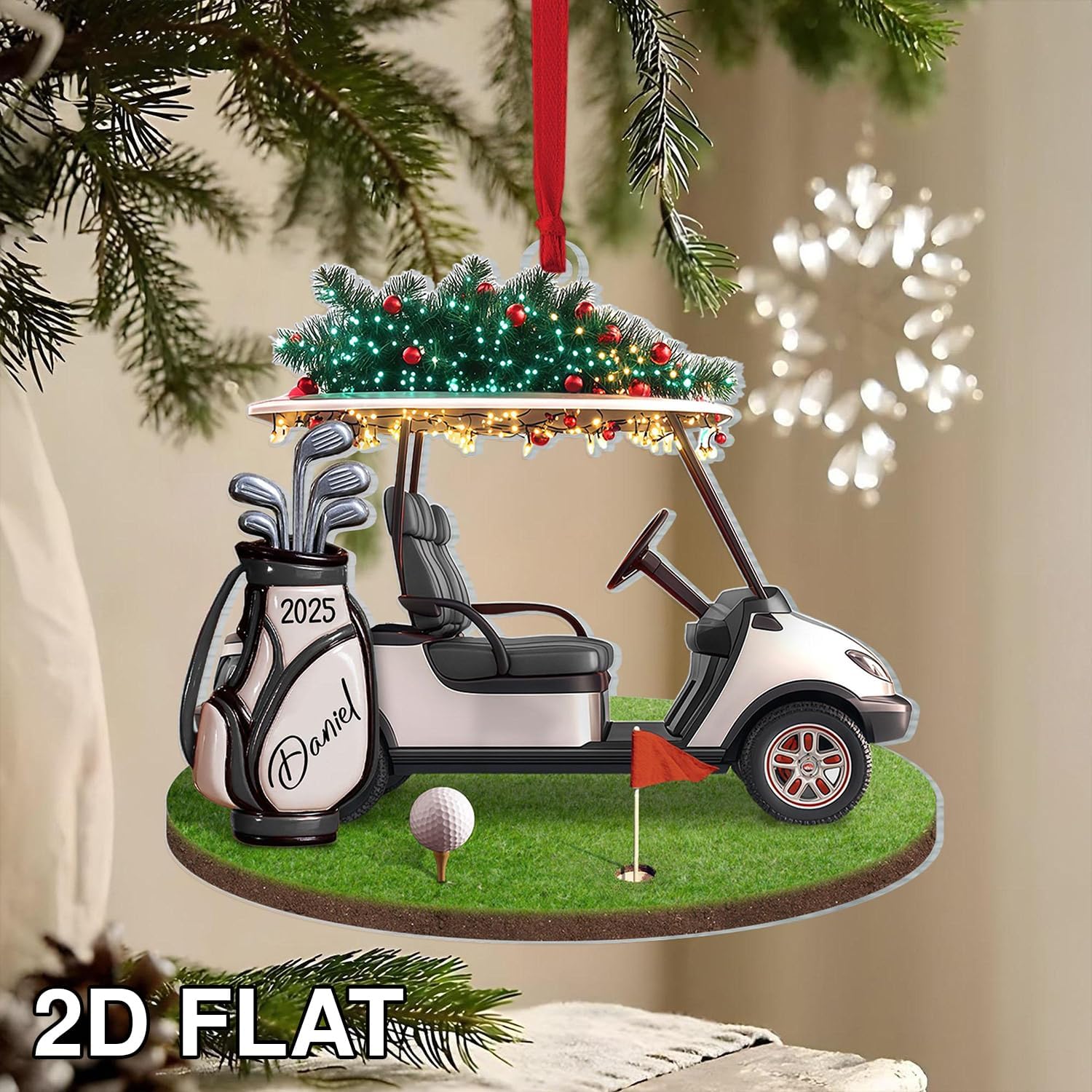 LOVELYPOD Personalized Golf Christmas Ornament, Custom Golfer Bag 2D Acrylic Ornaments,Golf Lover Christmas Tree Decoration, Gift for Golfs Enthusiasts, Golfer Holiday Ornaments 01